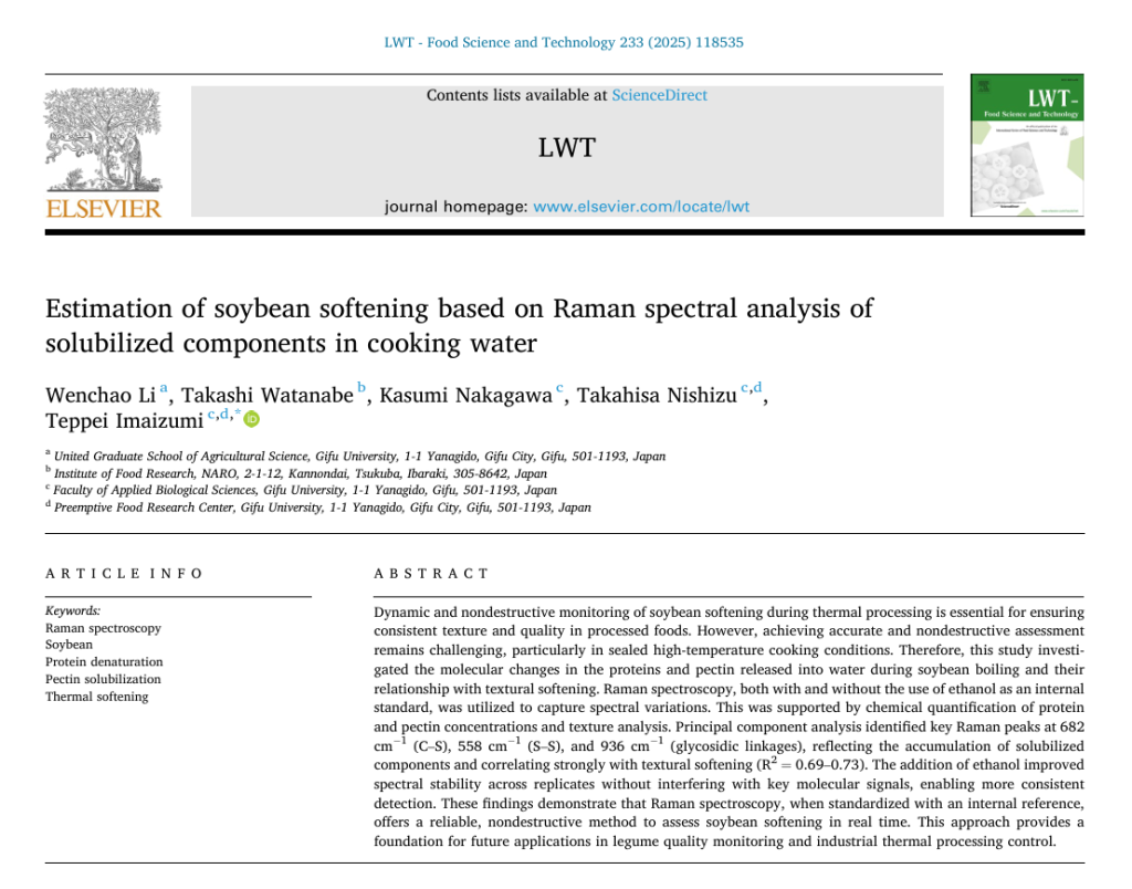 「Estimation of soybean softening based on Raman spectral analysis of solubilized components in cooking water」
