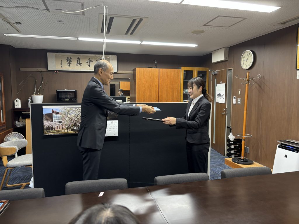 2025年10月16日 / 最終更新日時 : 2025年12月23日 guprocess Award 隠岐さんとNisaさんが研究科長表彰を受賞しました 先日の食品科学工学会での受賞を受けて、M1・隠岐さんとM2・Nisaさんが研究科長表彰に選ばれました。